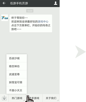 精品游戏签约发行,利用同行游戏渠道发行游戏产品,收集全平台用户落地伍游游戏,实现H5 游戏流量多渠道变现。目前已签约全行业市场H5主流游戏产品超过150款。